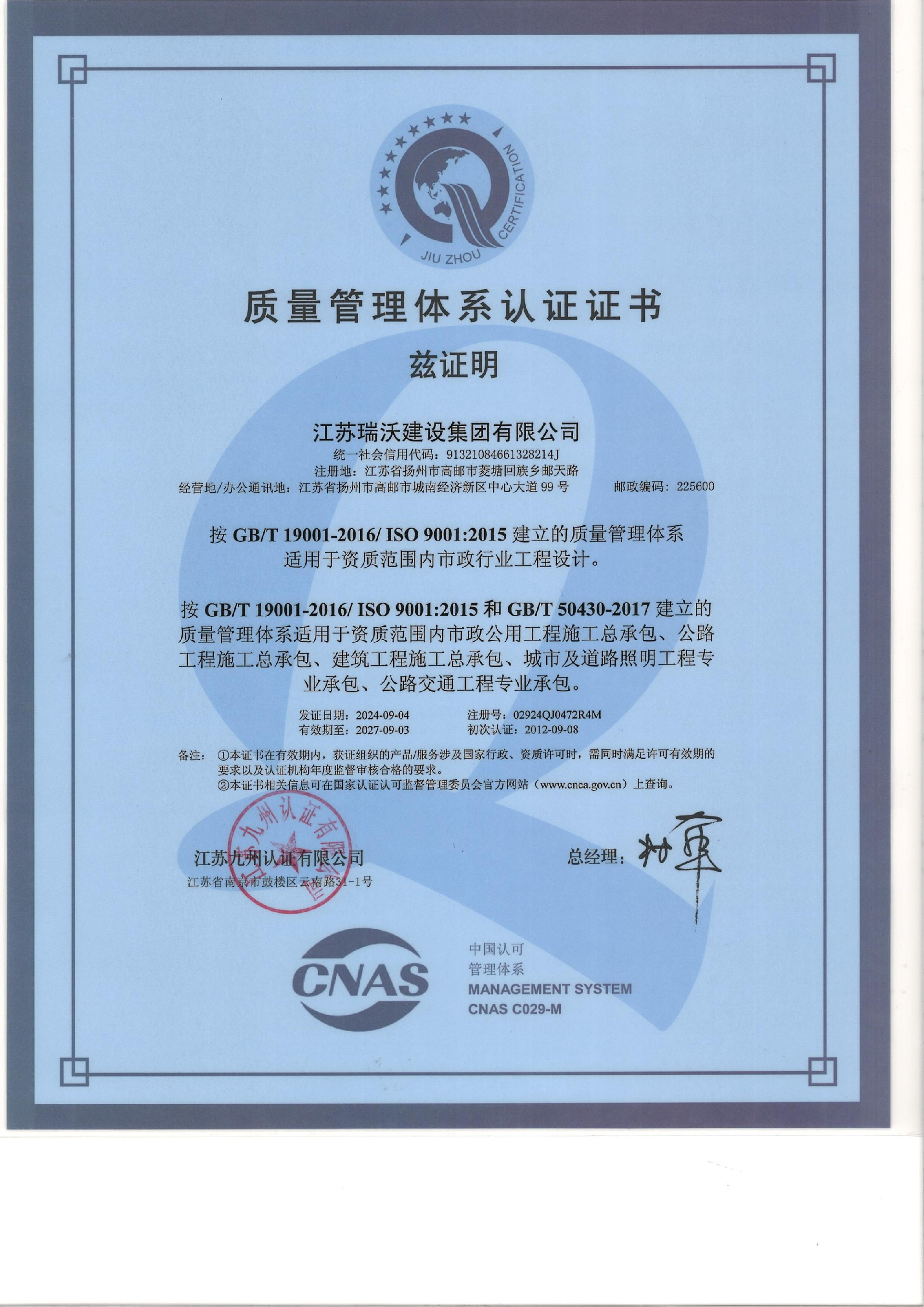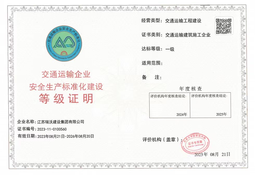 江蘇瑞沃建設集團有限公司成立于2007年,是一家以市政、交通工程建設為主導,集房屋建筑、交通安全設施、城市道路照明工程、電力工程、隧道工程、航道工程及投融資為一體的綜合性企業(yè)。企業(yè)注冊資本60000萬元,現(xiàn)有各類技術(shù)人員580人,其中中、高級以上人員498人,注冊類人員268人,一、二級建造師166人。公司榮獲“江蘇省建筑業(yè)優(yōu)秀企業(yè)”、“江蘇省五一勞動獎狀”,連續(xù)多年被評為“揚州市先進企業(yè)”、“江蘇省建筑業(yè)百強企業(yè)”,連續(xù)八年蟬聯(lián)百強企業(yè)基礎設施類第一名。